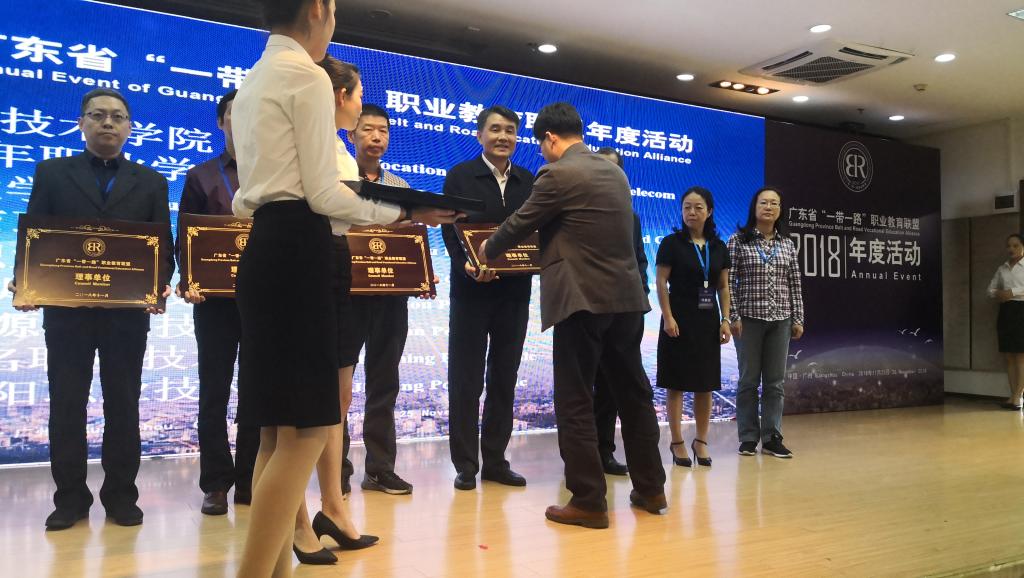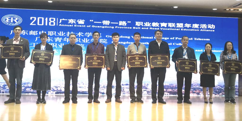 11月25日,广东省“一带一路”职业教育联盟在广东轻工职业技术学院举行2018年年度活动,来自中国、波兰、韩国、新加坡、马来西亚、柬埔寨、蒙古、吉尔吉斯斯坦等国的高校、企业、协会、留学服务机构代表汇聚一堂,共商“一带一路”沿线国家和地区职业教育发展和合作大计。广东省教育厅副厅长朱超华出席开幕式并致辞。广东省教育厅交流合作处处长李金俊、职业教育与终生教育处副处长张家浚,中国教育国际交流协会学术交流部副主任唐振福,广东教育国际交流服务中心主任陈旭辉,我校校长陈德清受邀出席了活动。
