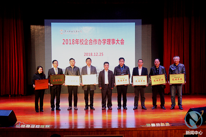 随后,大会对2017-2018学年在校企合作工作中表现突出的中兴通讯股份有限公司等8家合作单位和邱华盛等8名企业个人进行表彰。唐副主席分别为校企合作先进单位和先进个人颁发牌匾和荣誉证书。
