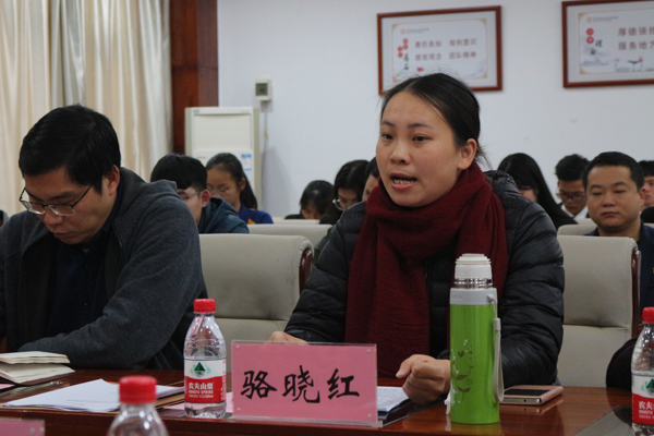 河源技师学院团委书记骆晓红汇报工作