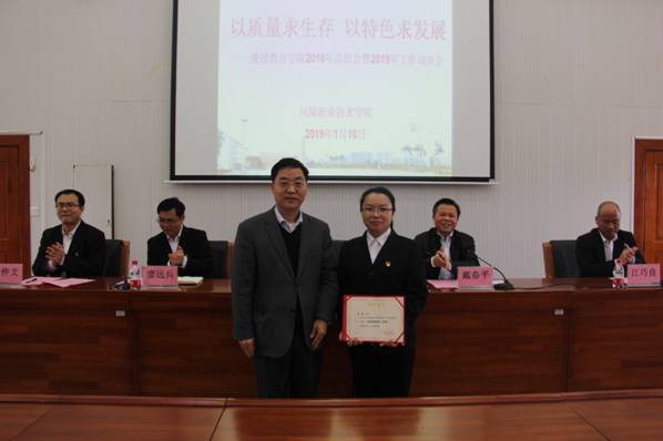 四是集体获奖荣誉方面,继续教育学院获2018年“广东省成人教育先进单位”,获2018年河源市首届工作技能大赛两项第一名,获2018年学校年度考核第一名。
