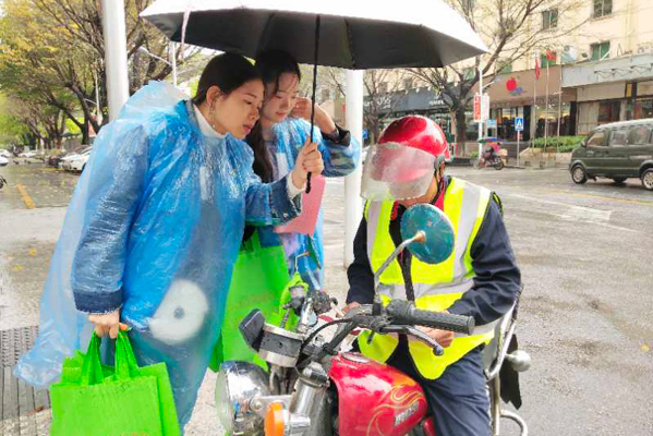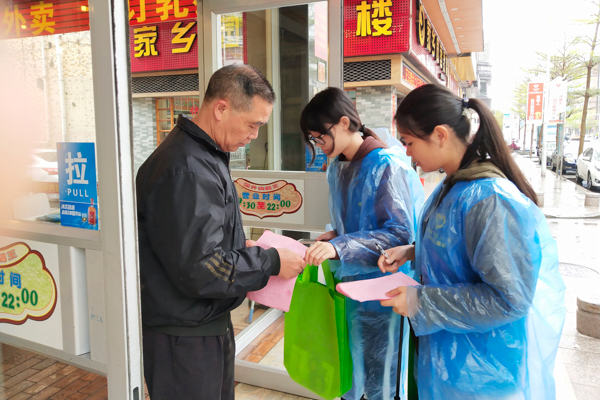 志愿者向居民发放宣传单