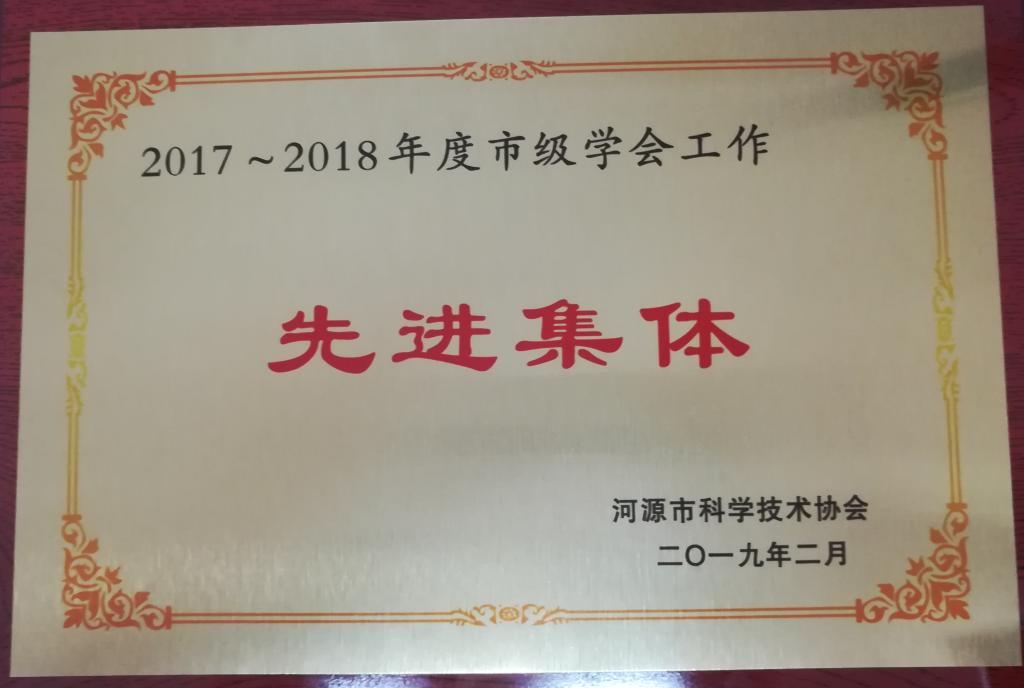 日前,经河源市科学技术协会评定,我校“赢博线上官网(集团)官方网站科学技术协会”(设在科研处)被授予“2017-2018年度市级学会工作先进集体”称号。