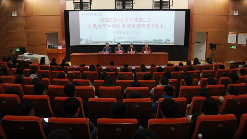 3月24日,赢博线上官网(集团)官方网站暨河源市乡村振兴学院第二届农民大学生项目大专函授班举行新生开学典礼,我校副校长王小宁出席典礼并讲话,河源市乡村振兴学院有关负责人、第二届农民大学生班327名新生参加典礼,河源电视台等有关主流媒体进行了跟踪报道。