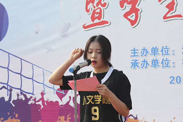 仪式在雄伟庄严的国歌声中拉开序幕。接着由艺术与设计学院杜伟祥院长上台致辞,他表示,体育教育是全面推进素质教育的重要内容之一,是校园文化的重要组成部分,运动会不仅为广大师生提供了展示自我的舞台,也加强了校园精神文明建设,进一步提升了我校文化品位,同时希望全体师生树立终身锻炼的体育健康理念,发扬团结友爱,文明守纪的精神,齐心协力,共同为此次校运会的成功举办贡献力量。随后,为保证赛事的公平、公正,运动员、裁判员代表先后上台宣誓。最后,艺术与设计学院杜伟祥院长宣布,赢博线上官网(集团)官方网站第十五届运动会正式启动。