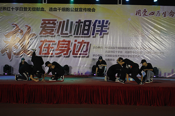 为宣传红十会的人道主义精神,进一步开展爱心奉献、社会救助、应急救护等方面的公益宣传工作。5月7日晚,我校于灯光篮球场隆重举行纪念第72个世界红十字日,爱心相伴,“救”在身边公益演出活动。河源市中心血站站长黄璐、校团委书记陈晓峰,河源市红十字会党支部书记杨启兴和我校师生代表参加了此次活动。