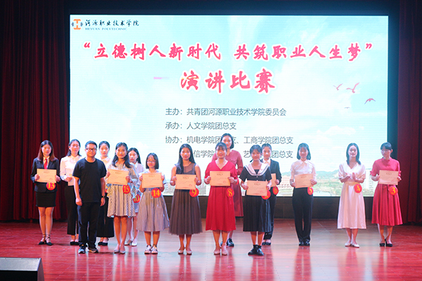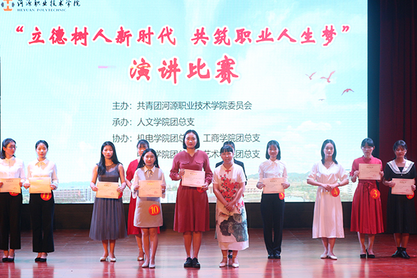 为认真学习贯彻习近平总书记在纪念五四运动100周年大会上的重要讲话精神,贯彻落实“德智体美劳”的教育方针,积极宣传宣传习近平总书记关于“德技并修、工学结合”的重要指示精神。5月14日晚,我校于艺术楼演播厅举行“立德树人新时代,共筑职业人生梦”演讲比赛。学校团委书记陈晓峰,团委全体老师,各学院团总支书记,参赛选手和各学院学生代表均参加了此次活动,人文学院副教授郑尔君、思政部基础教研主任郭慕卿以及艺术学院老师宋丽娟担任本次比赛的评委。