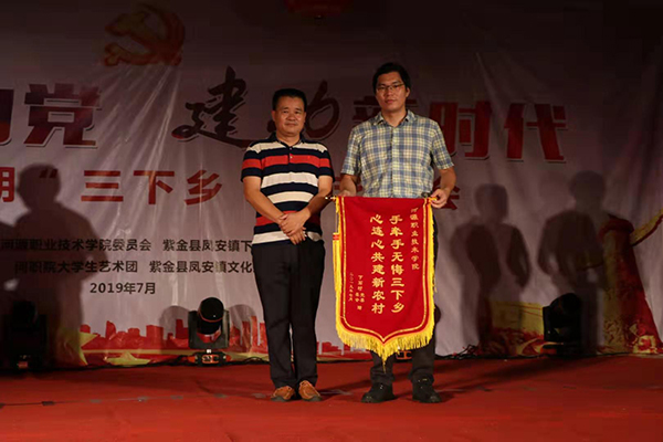 7月21、22日晚,我校分别于紫金县凤安镇下石村文化广场及龙川县新田镇中学举行2019年暑期“三下乡”社会实践活动文艺晚会。新田镇党委书记骆志全,镇长刁洪平,人大主席王汉华,紫金县凤安镇武装部部长张奕文,工商管理学院院长俞彤,我校团委书记陈晓峰,校团委副书记黄志鹏,我校“三下乡”社会实践活动带队老师谢国栋等领导分别出席了本次晚会。此外,下石村村干部,下石村村民,下石小学学生,新田镇的父老乡亲及我校下石村“三下乡”志愿者、工商学院“三下乡”社会实践团全体志愿也一同观看了本次晚会。