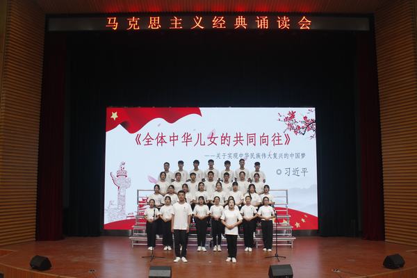 在诵读会中,各组学员以整洁的着装、饱满的精神轮番上阵,伴着婉转的旋律和铿锵有力的节拍,声情并茂地朗诵了《十九大报告》节选、《在纪念马克思诞辰200周年大会上的讲话》、《习近平在北京大学师生座谈会上的讲话》、《在纪念五四运动100周年大会上的讲话》、《习近平在纪念红军长征胜利80周年大会上的重要讲话》、《青年运动的方向》、《反杜林论》、《全体中华儿女的共同向往》等经典名篇。