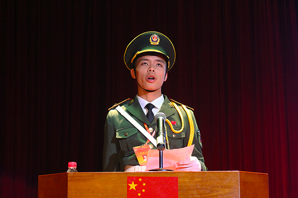 我校党委韦荣书记为国旗护卫队颁授国旗