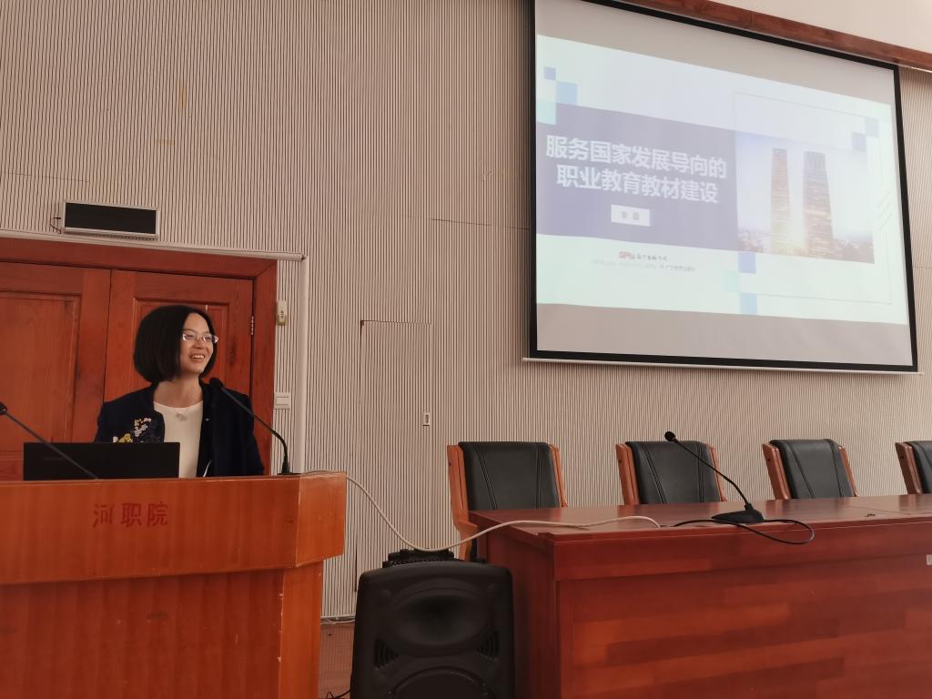 讲座由广东教育出版社职业教育部门总负责人李霞主任主讲,李主任为大家解读了职业教育相关政策,剖析教材出版全流程,并在总结第一批“十三五”职业教育国家规划教材申报工作经验基础上,就如何编写出符合国家发展导向的职业教育教材建言献策。