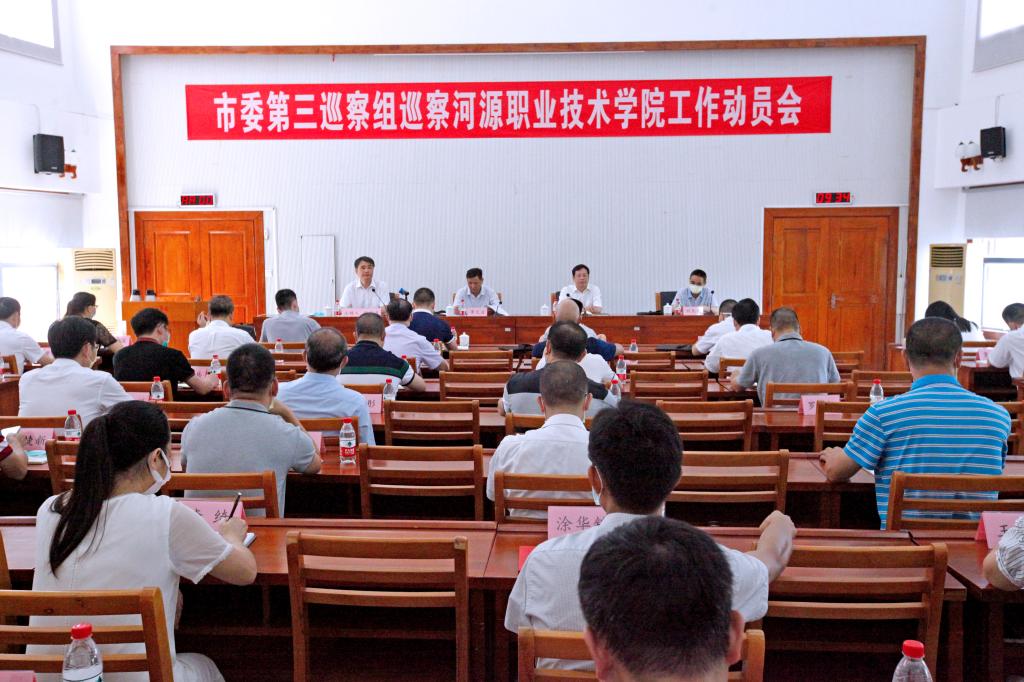 巡察组组长李文波对巡察工作进行了动员和部署,对此次巡察工作提了三点意见。第一,深入学习贯彻习近平新时代中国特色社会主义思想和党的十九大精神,深刻认识巡察工作的重大意义。李文波强调,市委决定对河职院开展巡察,充分体现了市委对学校工作的高度重视,以及对学校党员干部和广大教职工的关心爱护。是对学校坚持党的全面领导,加强党的建设,全面从严治党的政治体检。学校领导班子和党员干部一定要统一思想,增强“四个意识”,深刻认识巡察工作的重大意义。第二,深化政治巡察,自觉承担“两个维护”重大政治责任。李文波指出,市委巡察组将坚持问题导向,突出关键少数,做到“三个聚焦”,加强对学校领导班子和领导干部的监督,解决管党治党“宽松软”的突出问题。第三,提高政治站位,切实担起支持配合开展巡察工作的政治责任。李文波强调,做好巡察工作是市委巡察组和学校共同的政治责任,学校领导班子和党员干部要提高认识,端正态度,强化责任担当,全力配合巡察工作。巡察组在巡察过程中,将坚决落实中央八项规定及实施细节精神,严格遵守党的纪律。学校领导班子及党员干部在自觉接受巡察监督的同时,也要加强对市委巡察组工作的监督。