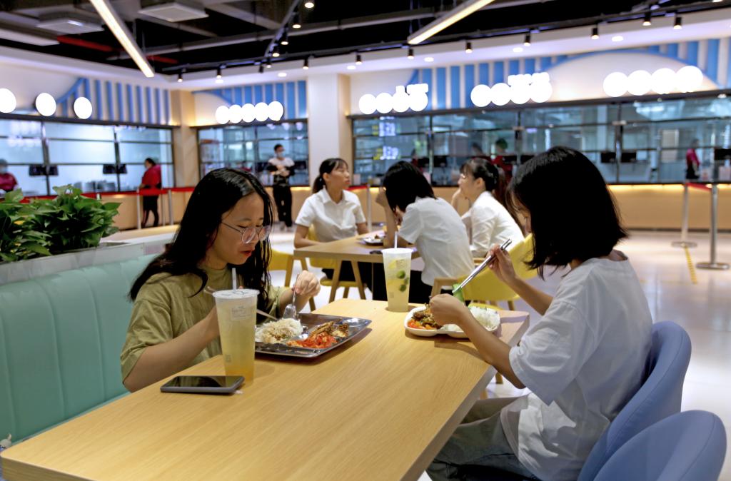 学生返校到达学校东门后,在工作人员指引下有序排队,依次经过扫码验证、行李消杀、更换口罩、体温检测、现场报道等环节后进入校园。