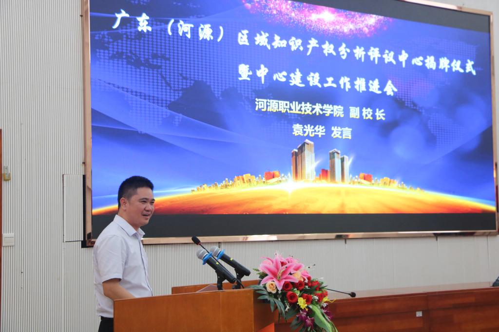 会上,陈德清校长在致辞中表示,我校近年来围绕服务地方、知识产权创造与服务等方面不断加强科技创新工作。此次联合佛山市海融科创知识产权代理事务所和合享汇智信息科技集团(广州)有限公司,成功申报广东(河源)区域知识产权分析评议中心,既是对我们前段工作的肯定,也是对我们的鞭策。中心的成立,将推动建立完善河源市重大经济科技活动知识产权评议制度,切实为区域产业提质增效和企业创新发展提供支撑,推动区域经济高质量发展。