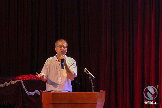 张超在致辞中表示,学院全体教师要坚持思想铸魂,深入学习贯彻习近平新时代中国特色社会主义思想。要求学院各专业要积极组织学习《习近平谈治国理政》第三卷以及关于教育的重要论述的主要内容。