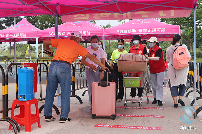 10月16日上午,我校人文学院2020年迎接新生工作在中庭拉开帷幕,根据疫情防控要求,我校2020级新生分批次,错时错峰入学,同时积极做好疫情防御工作。所有新生到达学校西门后,在志愿者和工作人员指引下有序排队,依次进行健康码验证、行李消杀、更换口罩、体温检测等环节后进入校园,由学生志愿者引领到教学楼中庭报到处办理入学手续。