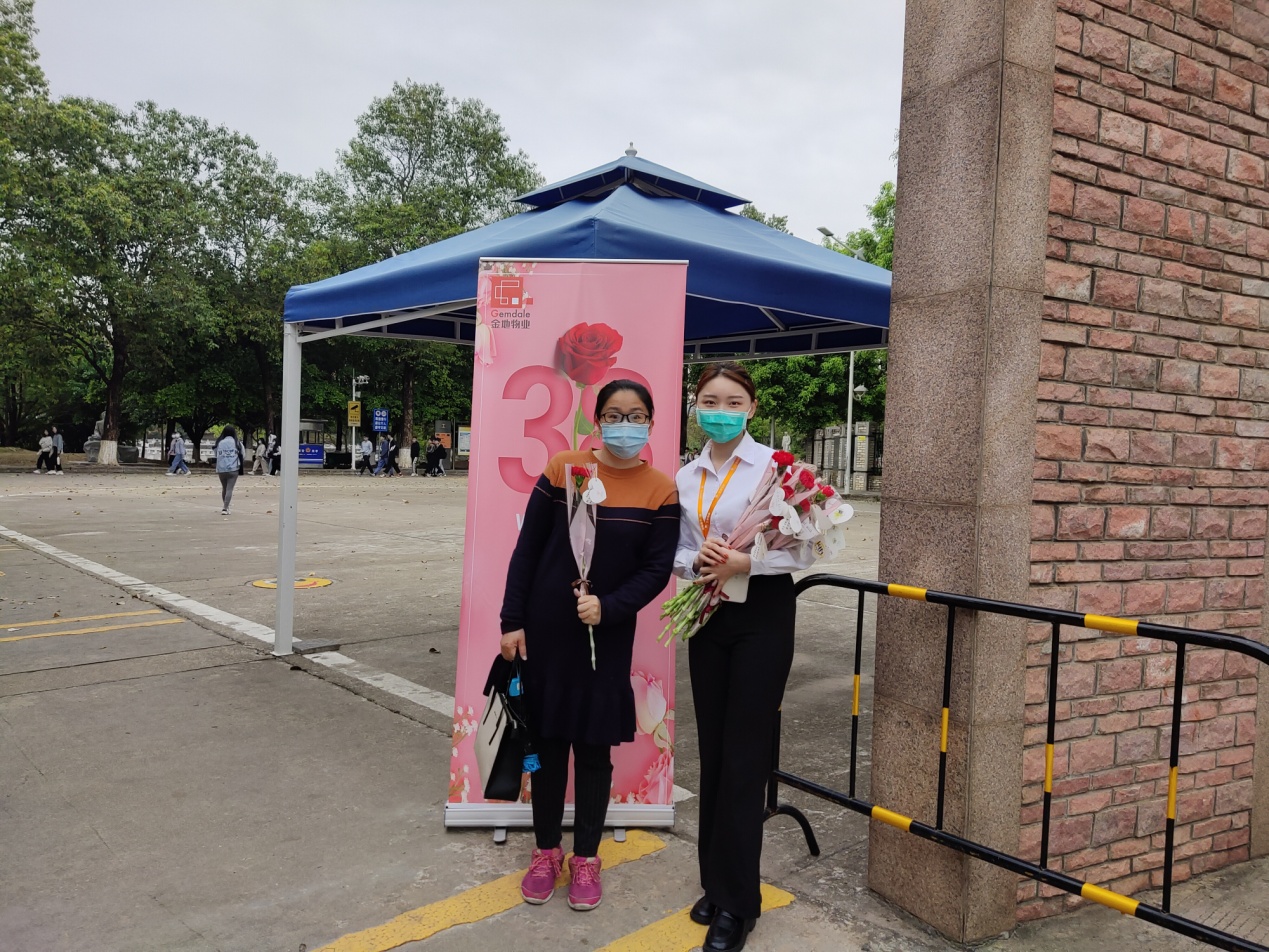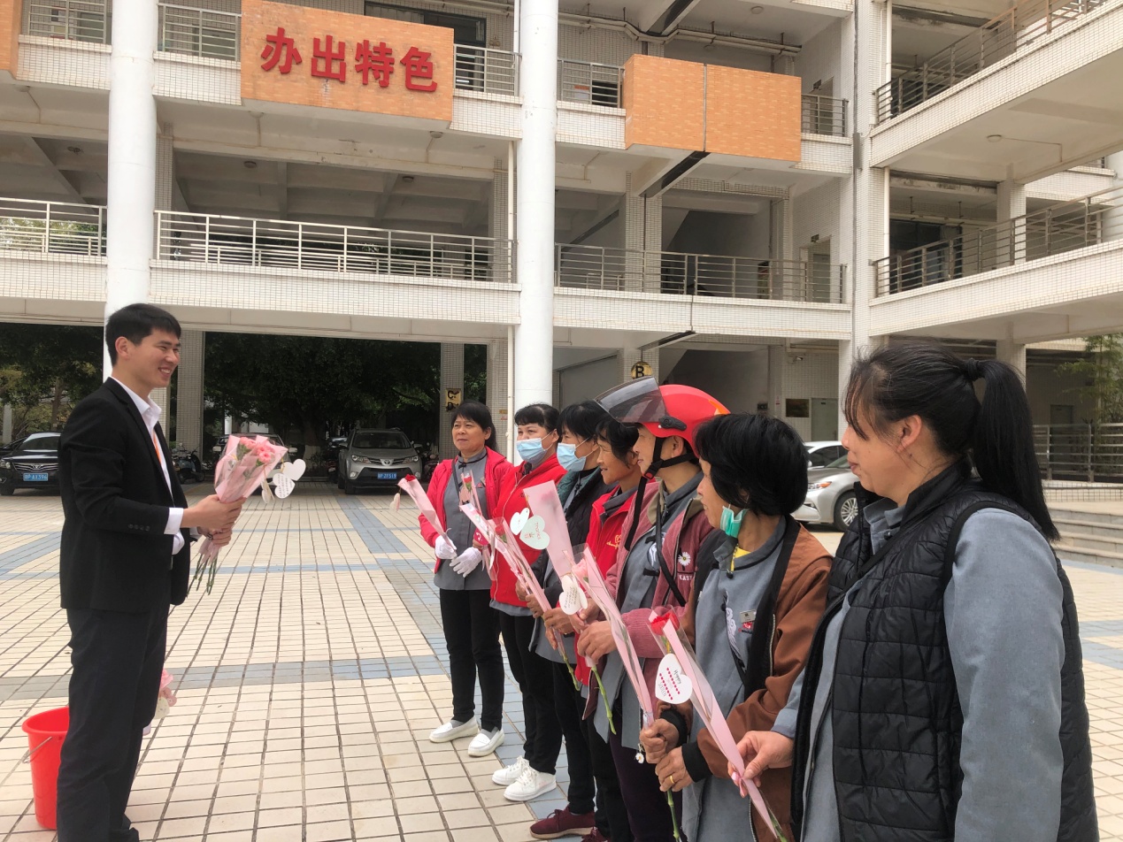 阳春三月,万物复苏,在“三八”妇女节来临之际,为向全校女同胞们送上温馨的祝福和深切的关爱,同时,让女同胞们感受来自学校物业的关怀和问候,金地物业赢博线上官网(集团)官方网站管理服务中心举行了“3.8鲜花赠女神”活动。