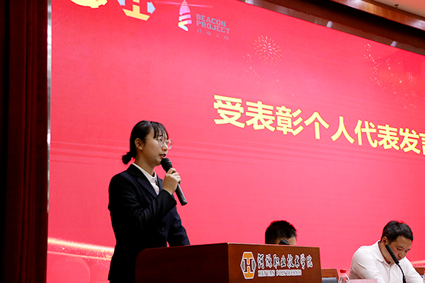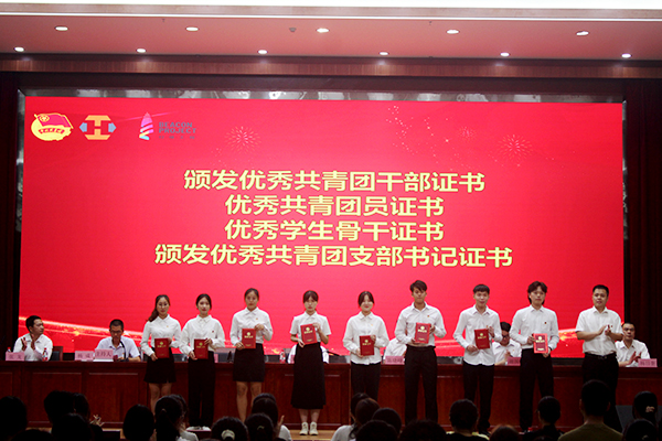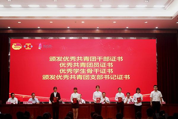 会议在庄严肃穆的国歌中拉开序幕。赖小景副校长分别为广东省优秀共青团员黄冬婷、省优秀学生会工商管理学院、河源市优秀团干部杨日奎书记、优秀共青团员陈慧婷颁发荣誉证书。会上,宣读了《赢博线上官网(集团)官方网站2021年五四表彰决定》,并为受表彰的先进集体和先进个人颁奖。