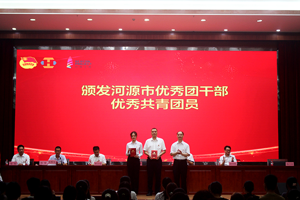 赖小景副校长为河源市优秀团干部及优秀共青团员颁发荣誉证书