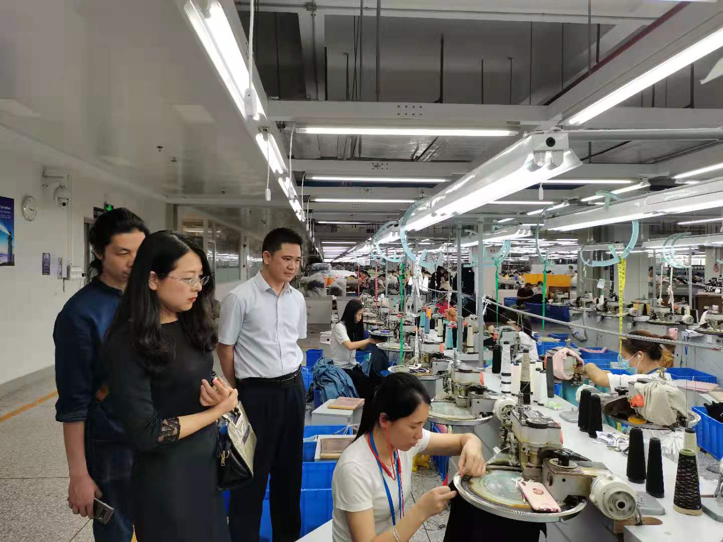 袁光华(右1)等参观以纯生产车间