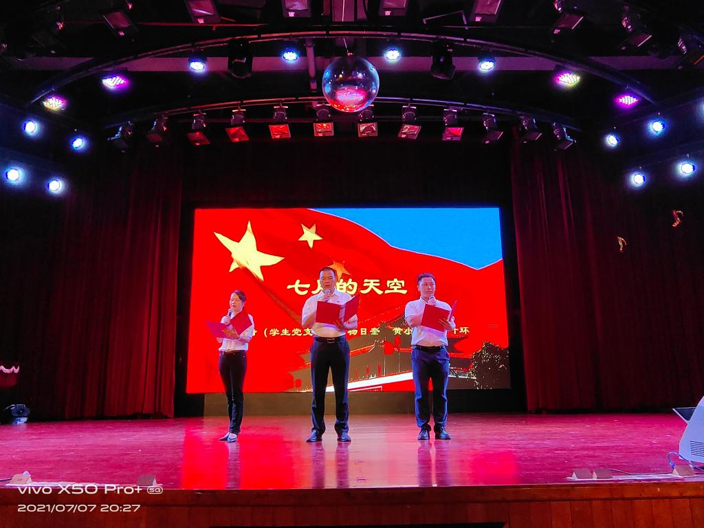 为隆重庆祝中国共产党成立100周年,回顾党的光辉历程,讴歌党的丰功伟绩,继承和发扬党的光荣传统和优良作风,进一步巩固主题教育成果,增强党组织的号召力、凝聚力和战斗力,激励广大党员坚定理想信念,发挥党组织战斗堡垒作用和党员先锋模范作用。我院党总支部于2021年7月7日在艺术演播厅开展庆祝中国共产党建党100周年朗诵音乐会。