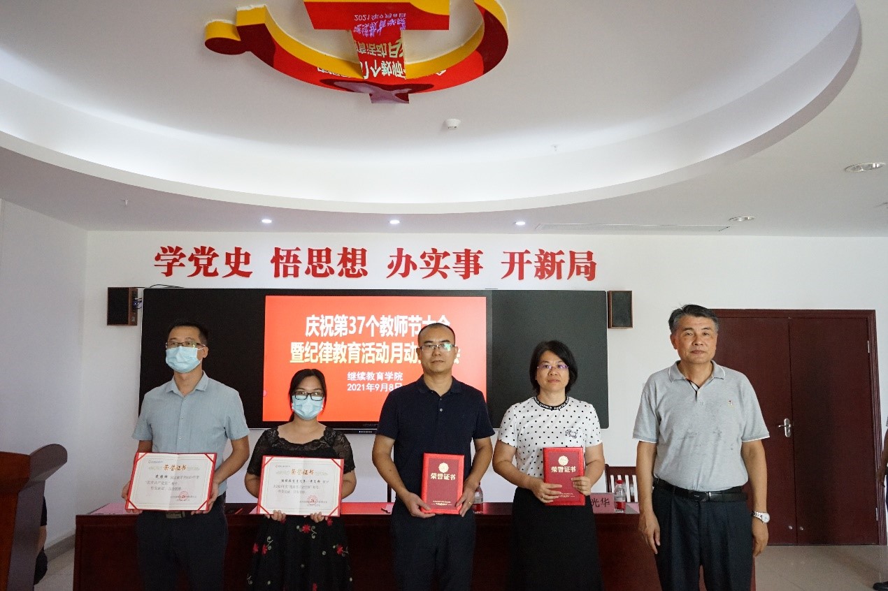 9月8日,继续教育学院召开2021年庆祝教师节大会暨纪律教育学习月活动动员会。陈德清校长、袁光华副校长、相关部门负责人及继续教育学院全体人员参加会议。继续教育学院江巧良副院长主持会议。