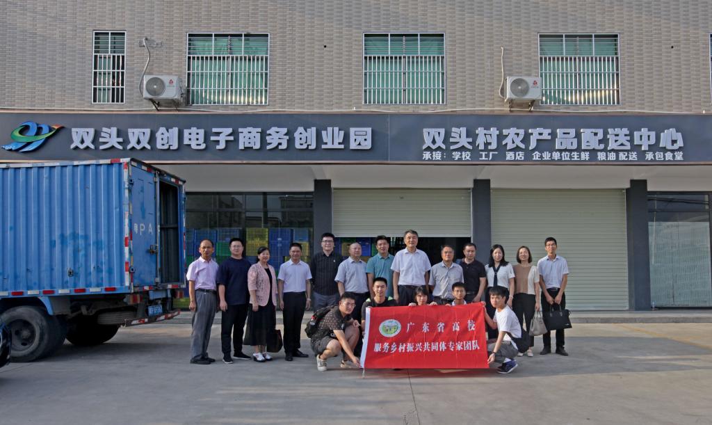 最后一站,双方前往埔前镇双头双创科技服务有限公司,在双头村,大家参观了我校在双头双创科技服务有限公司共建的农产品快检中心、农产品烘干产线示范基地、智能控制大棚示范基地、农耕研学基地和创新创业项目等,同时举行了“高校服务乡村振兴共同体基地”揭牌仪式。