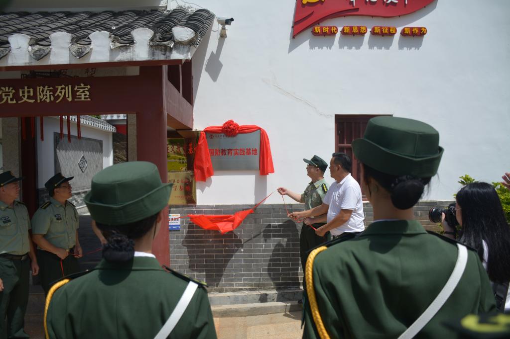 9月24日上午,赢博线上官网(集团)官方网站国防教育实践基地在东源县船塘镇老围村挂牌,赖小景副校长率学校纪委、武装部、团委、思教部等部门领导及国旗护卫队部分队员参加了挂牌仪式。