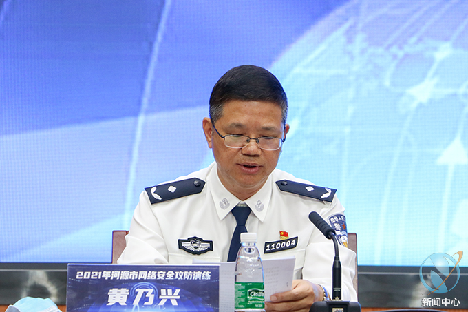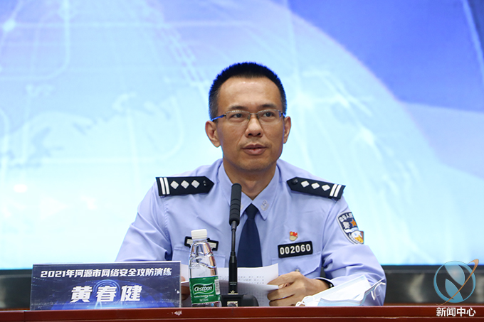 省公安厅网警总队副总队长黄春健发表讲话,他表示,当前网络空间已经成为各国博弈的重要战场和犯罪滋生蔓延的主要载体,事关群众切身利益、企业存亡、社会稳定和政治安全,此次演练就是贯彻落实习近平总书记关于网络安全与信息化工作系列重要讲话精神的重要举措,是检验河源市网络安全防护能力以及协同应对网络突发事件能力的有力措施。对此,他提出三点期望,一是落实等保制度,压实网络安全主体责任;二是认真总结归纳,形成本地特色工作模式:三是固化成功经验,打造可复制的演练模板。