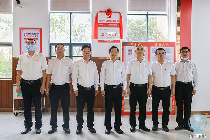 随后,韦荣书记、赖小景副校长、王小宁副校长等领导共同为“党史学习教育实践基地”“党员e修志愿者服务站”揭牌,并参观我校第二食堂党员之家“中国共产党的发展历程展”和“河源新民主主义革命时期的党史宣传展”。