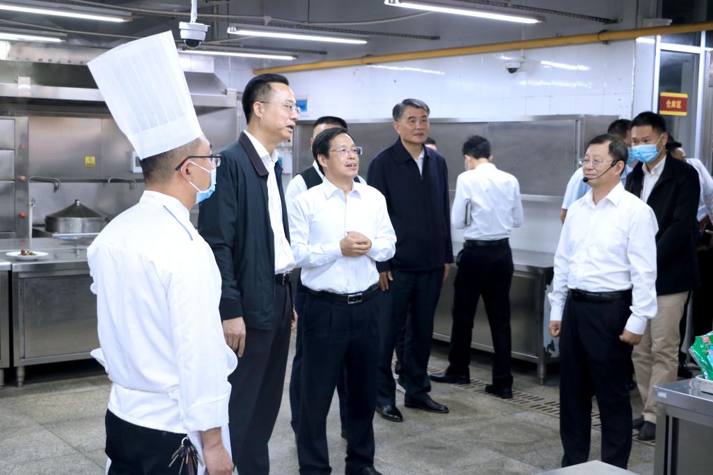 林涛深入到学校的继续教育学院、工商管理学院、电子信息工程学院、机电工程学院、食堂等地,详细了解学校的党建、教育教学、后勤管理等工作,实地参观了客家菜师傅培训学院、茶艺实训室、骆文冠艺术工作室、电子产品生产装配车间实训室等实训场所,并听取有关工作汇报。