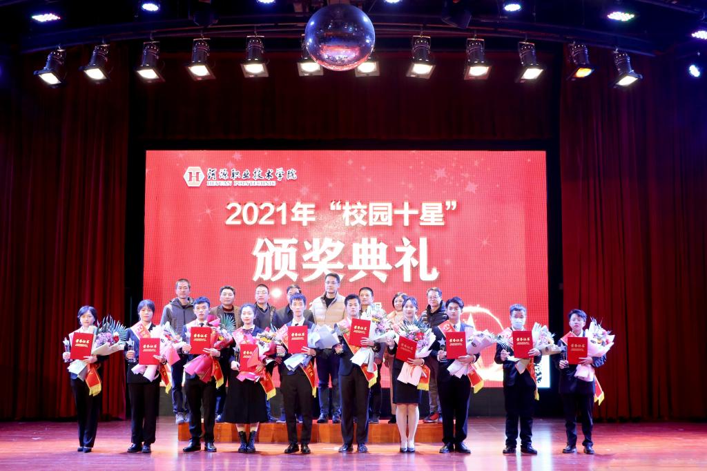 颁奖典礼上,学生工作处处长戴佰阳宣读了《关于表彰2021年“校园十星”的决定》,对2021年“校园十星”、“校园十星”提名奖、“校园十星”入围奖等获奖者者进行表彰。他表示,本年度“校园十星”评选秉着客观、公平、公正的原则,经个人申请、学院推荐、网络投票等多个环节,最终评选出“校园十星”10名、“校园十星”提名奖9名、“校园十星”入围奖28名。