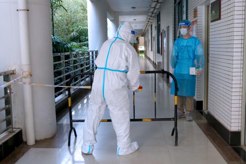 转运初筛阳性学生到临时隔离室,等待疾控人员进行现场采样和流调