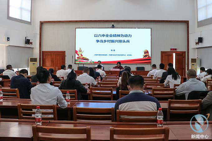 4月21日,我校在行政楼C108举行第十届村干部大专学历教育班开学典礼。开学典礼结束后,党委韦荣书记以“以六中全会精神为动力,争当乡村振兴排头兵”为主题,为第十届村干部大专学历教育班新生们带来一堂生动精彩的开学思政第一课。