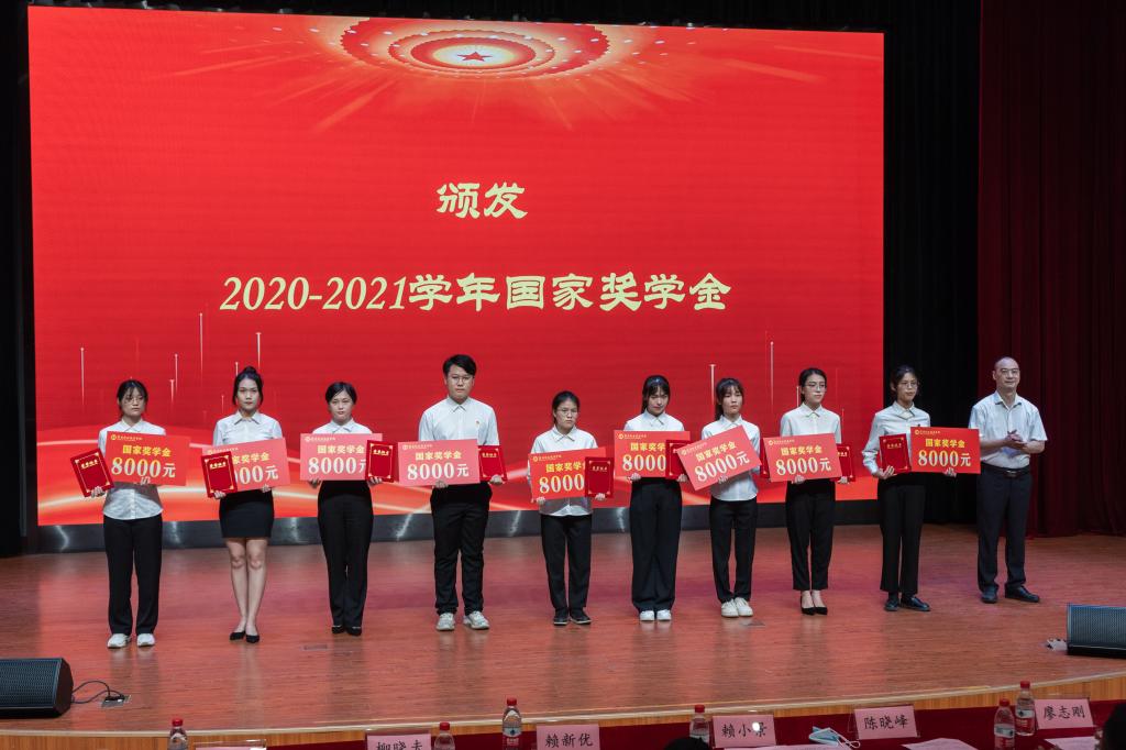 活动由诗朗诵《建团百年正青春奋斗有为正当时》拉开序幕。学工处戴佰阳处长宣布仪式开始,宣读了关于2020-2021学年国家奖学金、励志奖学金、优秀学生奖学金的一系列表彰决定。