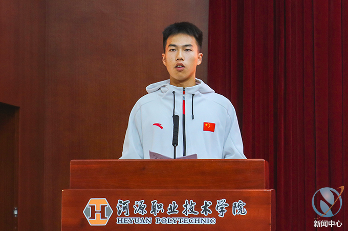 电子与信息工程学院20级学生彭怡彬代表退役大学生士兵发言。在发言中分享了他在部队的感受和体会:在部队中学到流血流汗不留泪,掉皮掉肉不掉队的精神,鼓励想当兵又害怕当兵的同学们要坚定自己的方向去尝试和努力,他号召广大青年学子携笔从戎、报效祖国。