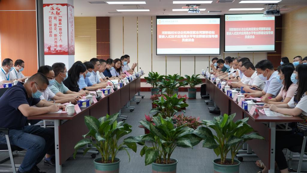 校企合作座谈交流会上,中国移动通信集团广东有限公司河源分公司、中移铁通有限公司河源分公司、华为技术有限公司、广东通力智能科技有限公司、河源万立通通信服务有限公司、河源市新锐网络科技有限公司、广东南方电信规划咨询设计院有限公司五分公司、润建股份有限公司、河源市创合通信科技有限公司、广东海格怡创科技有限公司、南越科技(东源)有限公司、河源市东江盈科发展有限公司、广东有为信息科技有限公司、深信服科技股份有限公司、中贝通信集团股份有限公司、超讯通信股份有限公司、广东南方通信建设有限公司、唐人通信技术服务股份有限公司、广州瀚信通信科技股份有限公司、中国移动通信集团广东有限公司河源营销中心、河源市平兴网络科技有限公司等21家企业均派企业代表参加座谈。