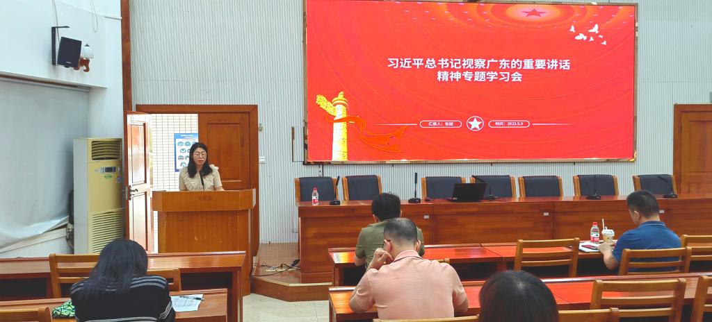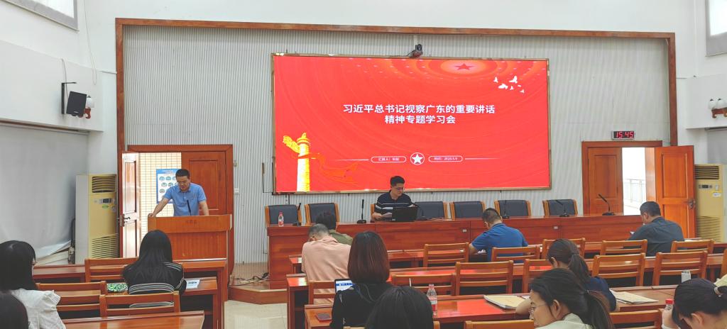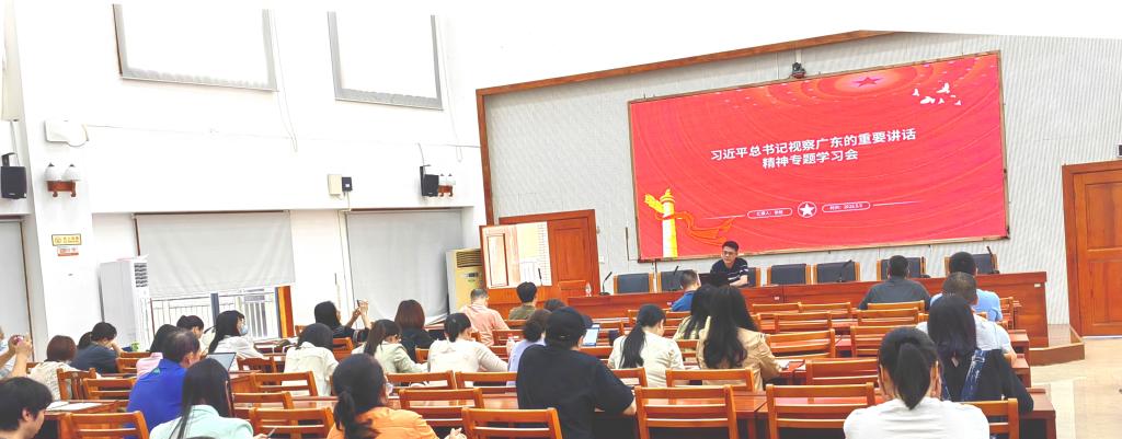 最后,袁光华副校长强调,学院全体教职工要深刻领会习近平总书记视察广东重要讲话、重要指示的丰富内涵和实践要求,切实用以统一思想、统一意志、统一行动;要深刻领会总书记对广东工作的勉励和指导,进一步坚定奋进新征程的信心和决心,乘势而上、奋力开拓、久久为功,巩固良好态势、发挥独特优势,以坚实的步伐朝着现代化目标阔步前行;同时,要求全体教职工深刻领会总书记对广东作出的新定位,做好思想上、精神上、工作上的充分准备,围绕高质量发展这个首要任务和构建新发展格局这个战略任务,以更为艰辛的探索、更加艰苦的努力,坚决完成好在推进中国式现代化建设中走在前列的使命任务。