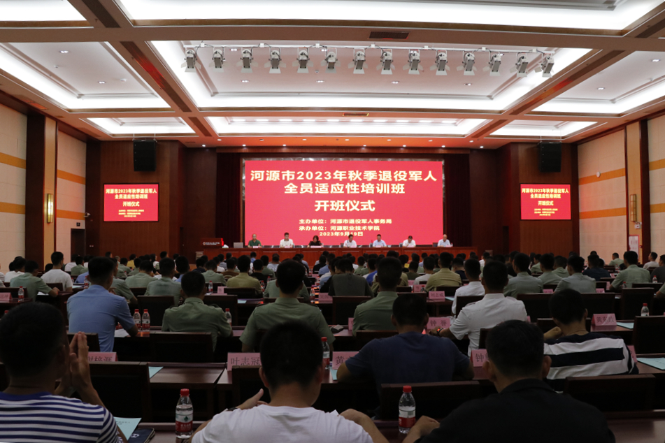 9月19日,2023年秋季河源市退役军人全员适应性培训班开班仪式在我校学术交流中心举行。学校副校长袁光华,市退役军人事务局党组成员、副局长吴慧先及市、各县区退役军人事务局相关人员以及全市2023年秋季退役军人200余人参加仪式。开班仪式由继续教育学院李文萍院长主持。