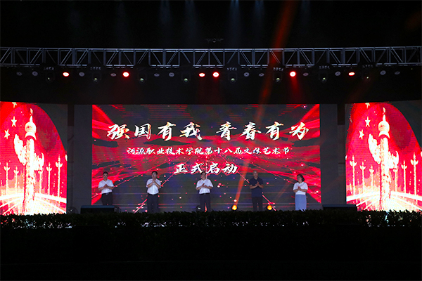 在筑梦乐团、梦寐乐队洋溢着青春激情的暖场节目后,韦荣书记、叶国英副书记、王小宁副校长、袁光华副校长、姚家芳副校长共同上台为本届文体艺术节开启帷幕。