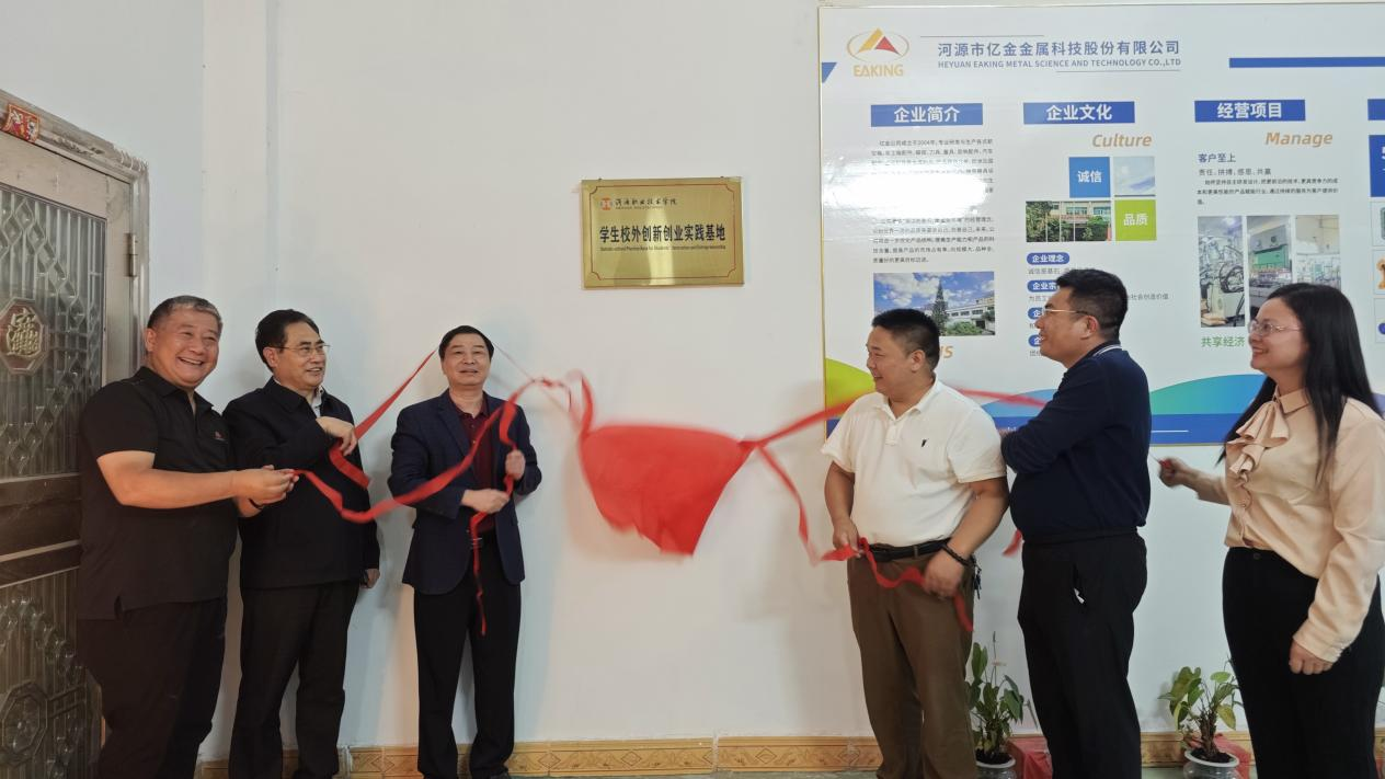 10月15日,赢博线上官网(集团)官方网站学生校外创新创业实践基地揭牌仪式在高新区河源市亿金金属科技股份有限公司顺利举行。广东省人民政府参事钟韶彬,民建中央农业与农村委员会委员、民建广东省委员会农业与农村委员会主任付伟,广东省乡村发展协会常务理事单位河源市亿金金属科技股份有限公司赖宇清董事长,我校创新创业学院骆开明副院长出席揭牌仪式。
