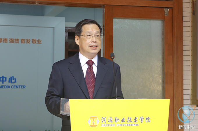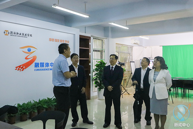 随后,韦荣书记、王小宁副校长、姚家芳副校长和党委宣传部部长赖新优等领导共同为融媒体中心揭牌。