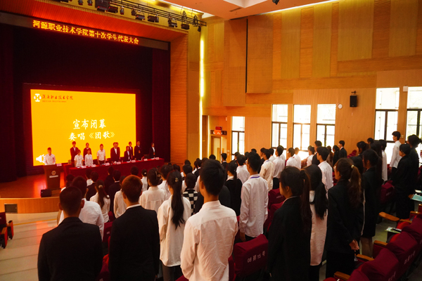 大会的最后,团委陈晓峰书记作讲话,他向学生代表和全体学生骨干们提出三点期望:第一、要思想过硬,素质过硬,怀揣初心,坚定理想信念;第二、在工作中善于思考,勤于总结,勇于创新,敢于思考;第三、要平衡好学习与工作,在各个方面树立模范意识,同时勉励学生骨干们要秉承习近平总书记系列重要讲话精神、全国学联二十七大精神,要有乘风破浪会有时的决心、不到长城非好汉的作风,带领广大同学绽放青春光彩。最后,大会在激情昂扬的团歌声中落下帷幕。