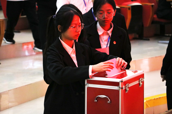 在大会的选举环节,全体正式代表通过无记名投票的方式选举产生了新一届学生会主席团和常任代表委员会。陈思敏、林洋、侯文杰、谢汐彤、谢铭烟当选第十届学生会主席团成员;方海林、尹琦彤、刘莎、张盈、林娜娜、郑纬键、练梦瑾、侯文杰、谢晨为新一届常任代表委员。之后,全体正式代表表决通过了《赢博线上官网(集团)官方网站学生会第九届委员会工作报告的决议》等一系列文件。