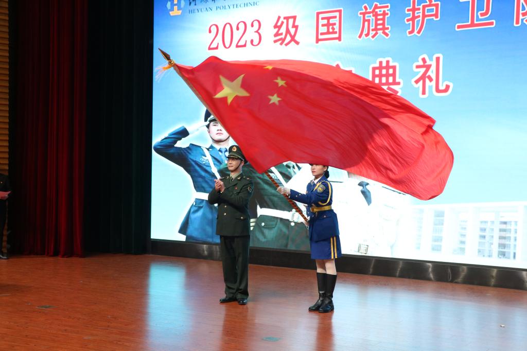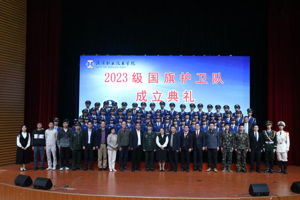 12月5日晚,我校在图书馆报告厅隆重举行2023级国旗护卫队成立典礼。出席本次典礼的有我校副校长赖小景、姚家芳,党政办主任汤剑冰、保卫处(武装部)处长邓伟昌 、校团委书记陈晓峰、信息中心主任杨文、各二级学院团委书记以及全体专职团干部和武装干部。应邀观礼的有:河源理工学校副校长戴伟军、广州大学附属东江中学副校长欧阳班启,以及河源开放大学、河源卫校、河源市黄岗职业技术学校、新河实验学校的国旗护卫队师生。本次典礼主持人由科研处廖远兵处长担任。