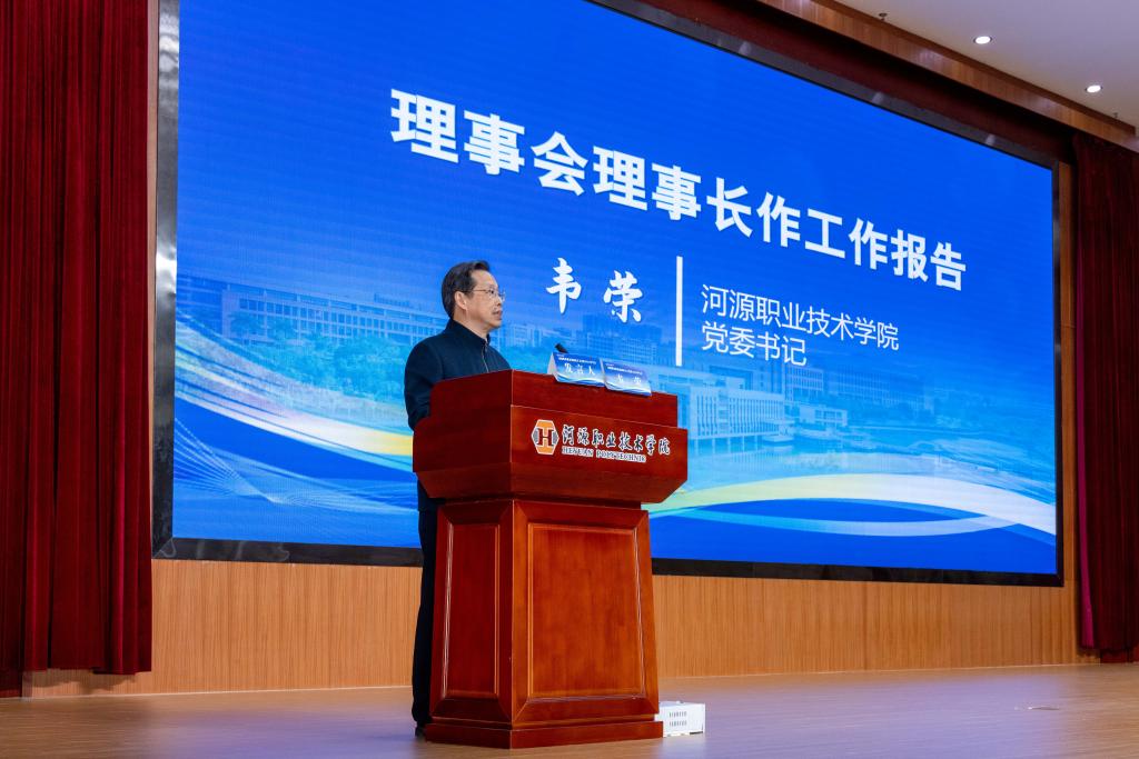 赢博线上官网(集团)官方网站党委书记韦荣作为理事会理事长单位代表作了理事会工作报告。韦荣首先对职教集团筹备过程和近几年的工作进行了回顾。他说,从拿到批复的那一天起,牵头学校河职院就与集团成员单位通力协作,坚持“共建共享,共赢共长”的原则,大胆探索政校行企协同新途径,产教融合的新局面逐步打开,各项工作扎实推进,产学研合作和人才培养等工作取得了明显成效。下一步,职教集团将搭建“中职-高职-职教本科”立交桥、建设省示范现代产业学院、推进产教协同育人和协同创新,打造高水平产学研平台,推进职普融通、产教融合和科教融汇,建设适应河源经济社会发展的现代职业教育体系。