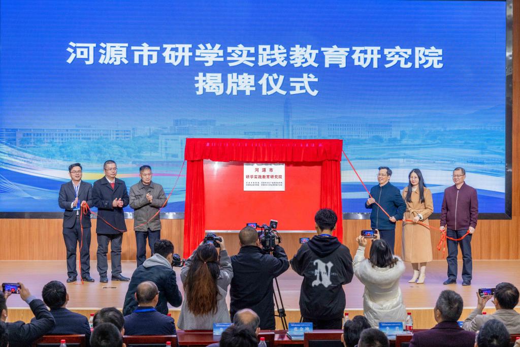 在“河源职业教育集团”成立揭牌仪式上,赢博线上官网(集团)官方网站党委书记韦荣,广东技术师范大学河源校区党委书记罗君辉,河源市教育局党组成员、副局长张金坤、河源市文化广电旅游体育局党组成员、副局长李君,河源理工学校副校长罗捷、河源市餐饮协会朱晓君会长、广东万绿湖文化旅游投资有限公司周维国董事长、广东雅达电子股份有限公司陈斌副总工程师上台,共同为“河源职业教育集团”揭牌。