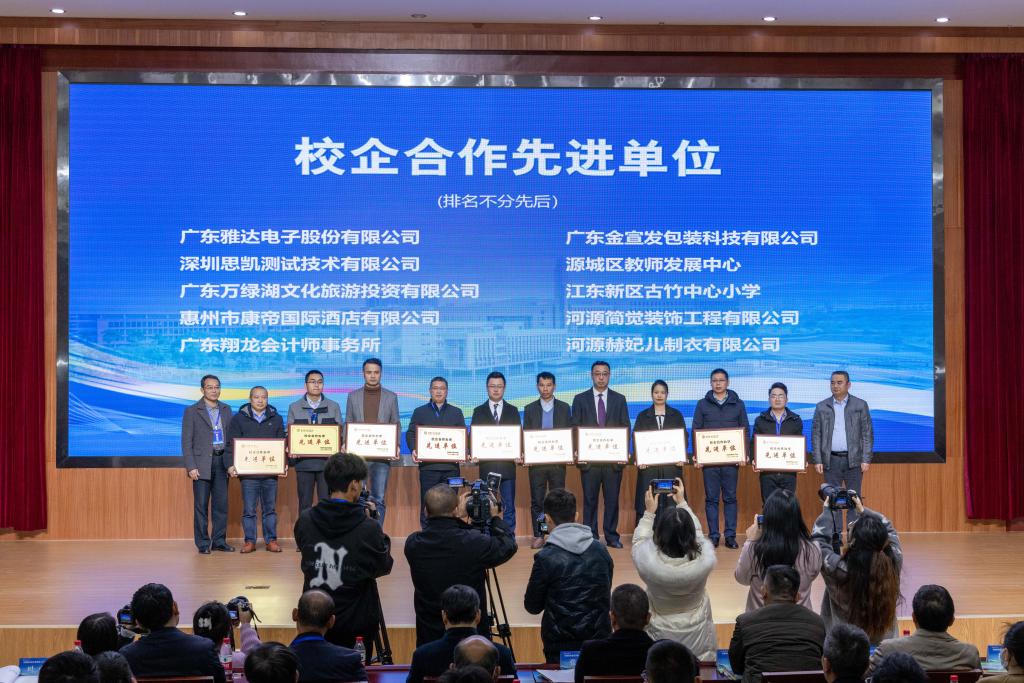年会上,职教集团还表彰了2023年度校企合作先进个人、先进单位、先进二级学院。广东雅达电子股份有限公司、深圳思凯测试技术有限公司等10家单位荣获“校企合作先进单位”;河源市客天下文化旅游管理有限公司余惠生,广东金宣发包装科技有限公司吴文全等10人荣获“校企合作先进个人”,赢博线上官网(集团)官方网站“工商管理学院”荣获校企合作先进二级学院。