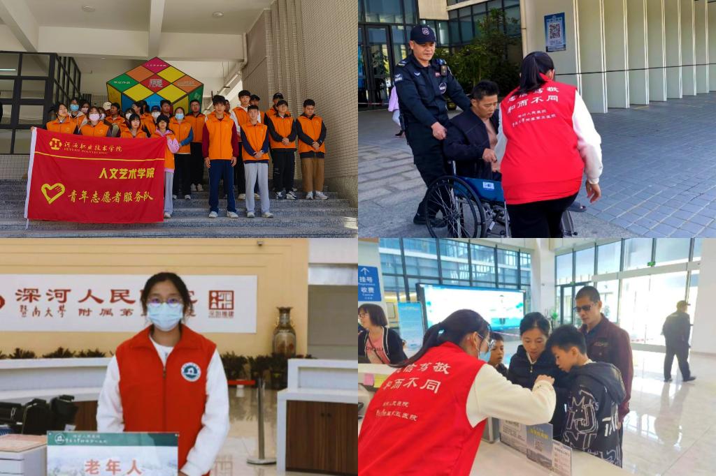 工商管理学院团委联合中国人民银行,在学校东门进行反洗钱及金融相关的法律法规知识的宣传活动,通过派发宣传单等方式,让群众了解日常金融知识;组织学生志愿者做好2024年河源国家高新区企业高质量发展大会大型会务服务工作。人文艺术学院团委组织志愿者,前往深河医院开展义务导诊志愿服务活动,用青春力量为就医患者提供便民服务。机电学院团委组织“河小青”志愿服务队前往美丽的东江河畔,开展护绿护水志愿服务活动,用实际行动助力绿美河源建设。电信学院团委开展家电义务维修进小区志愿服务活动,用专业知识切实为小区居民解决生活难题。老隆师范学院团委组织学生志愿者服务队,前往市博爱学校开展送爱心送温暖活动,通过文艺表演的形式为博爱学校同学们带去美好祝愿,传递积极向上的精神风貌,践行雷锋精神。校国旗护卫队前往东江首付标点幼儿园开展“大手拉小手”国旗知识进校园志愿活动,通过举行升旗仪式、操练展示,让国旗的星光照耀在孩子身上。