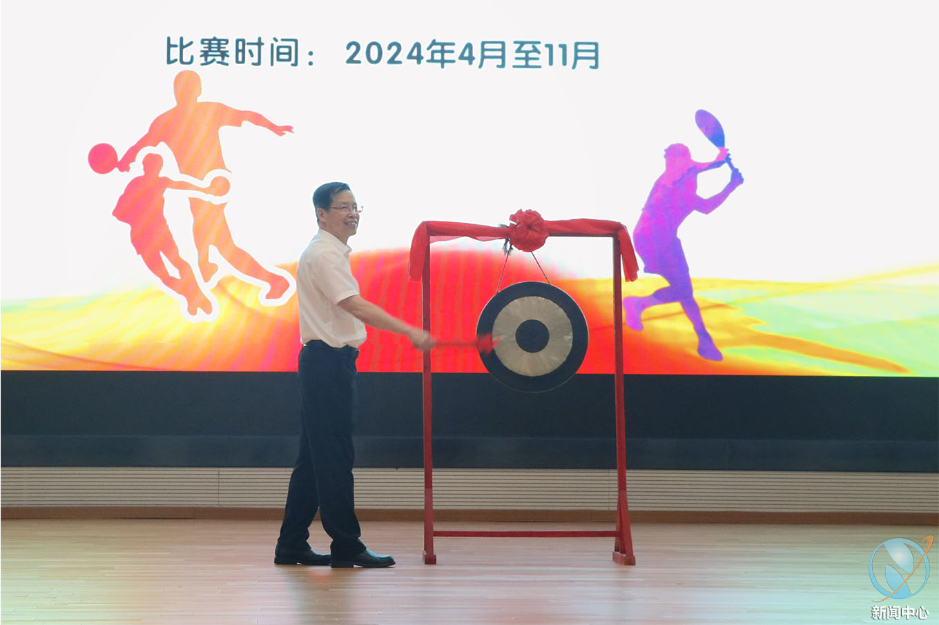 最后,韦荣书记上台开锣,宣布赢博线上官网(集团)官方网站第二十届运动会正式启动并为本次乒乓球比赛开球。