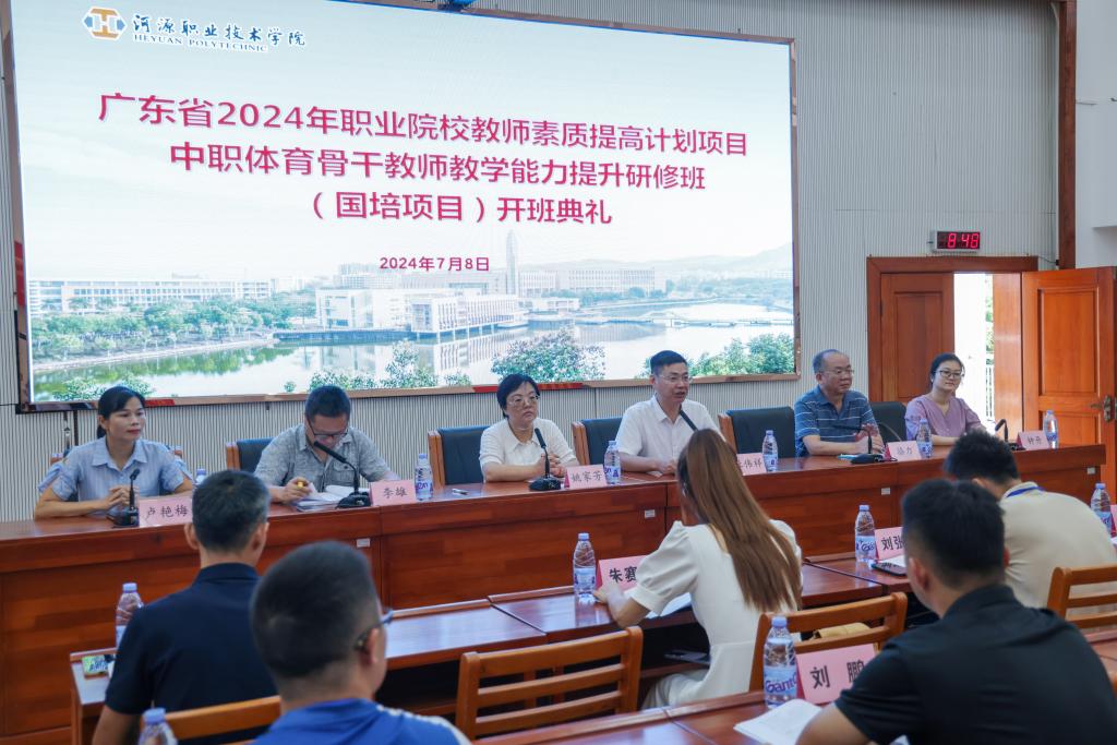 7月8日上午,广东省2024年职业院校教师素质提高计划项目——中职体育骨干教师教学能力提升研修班(国培项目)开班典礼在赢博线上官网(集团)官方网站行政楼C108举行。我校副校长姚家芳、老隆师范学院院长杜伟祥等出席开班典礼,来自广东省各地40名教师参加此次培训。